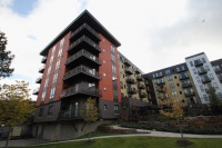 - Structural system includes slab on grade at the lowest level, two levels of post-tensioned concrete slabs including a second-floor podium supporting five wood-framed upper levels.