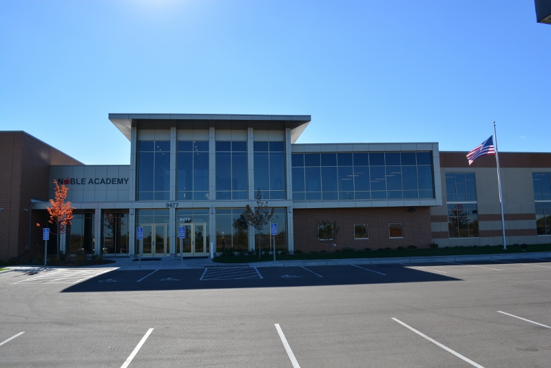 - One-story wing houses entry, gymnasium, auditorium, and music spaces, creating a robust student activity and arts program.