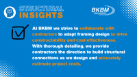Furthermore, we collaborate with contractors to adapt our framing design for constructability and cost-effectiveness. With thorough detailing, we provide contractors the direction to build structural connections as we design and accurately estimate project costs. We know material and labor costs constantly change, and new technologies are emerging to improve fire ratings, constructability, and sustainability. Working with contractors to leverage their expertise in current costs and construction practices helps us improve our design to work with the project's time, team, and location, while building on our past experiences.